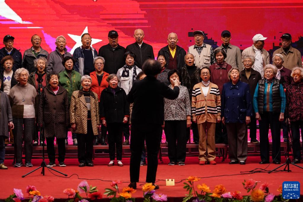 10月11日,在位于河北燕郊的燕達金色年華健康養護中心活動(dòng)中心內,老人們在合唱。