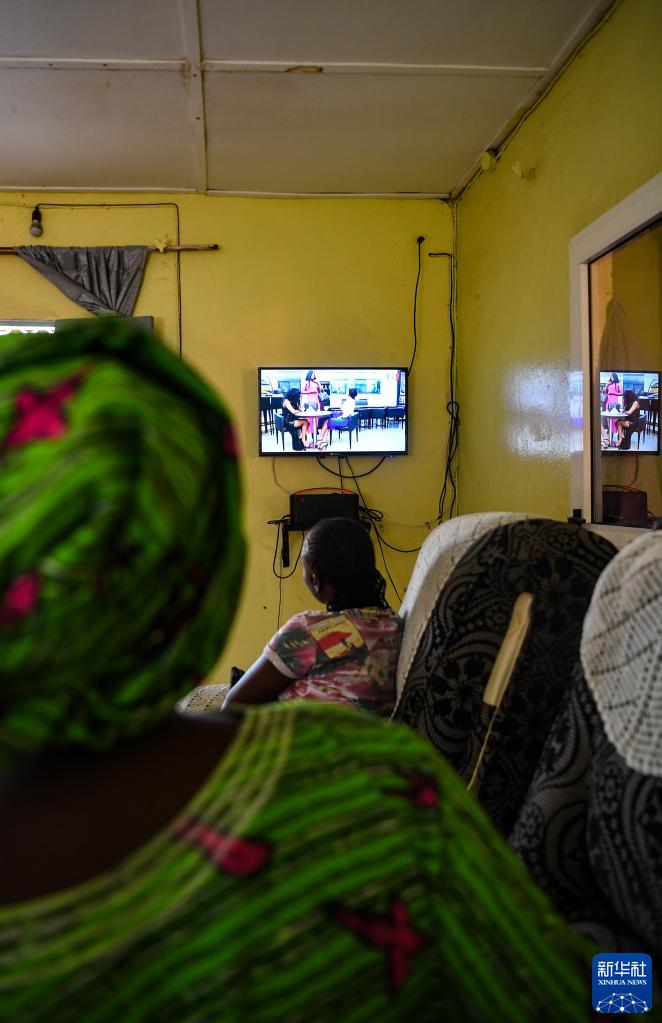 11月22日,在塞內加爾達喀爾近郊的辛迪亞村,村民使用“萬(wàn)村通”項目的電視機頂盒觀(guān)看電視節目。