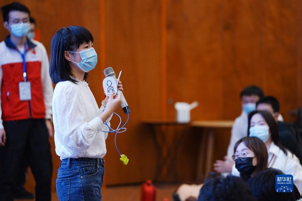 11月28日,清華大學(xué)醫院醫生李晶鈴(前)在為學(xué)生志愿者講授自動(dòng)除顫器的使用方法。新華社記者 鞠煥宗 攝