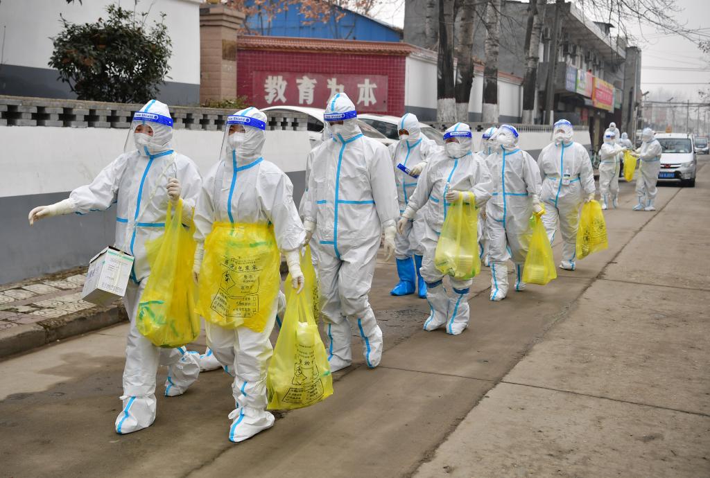 1月5日,在西安市長(cháng)安區郭杜街道周家莊村,醫護人員準備入戶(hù)進(jìn)行核酸檢測。新華社記者 邵瑞攝