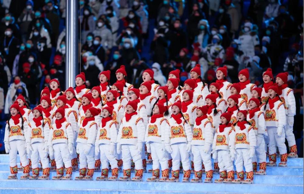 “馬蘭花兒童合唱團”用希臘語(yǔ)在北京冬奧會(huì )開(kāi)幕式上歌唱。新華社記者曹燦攝