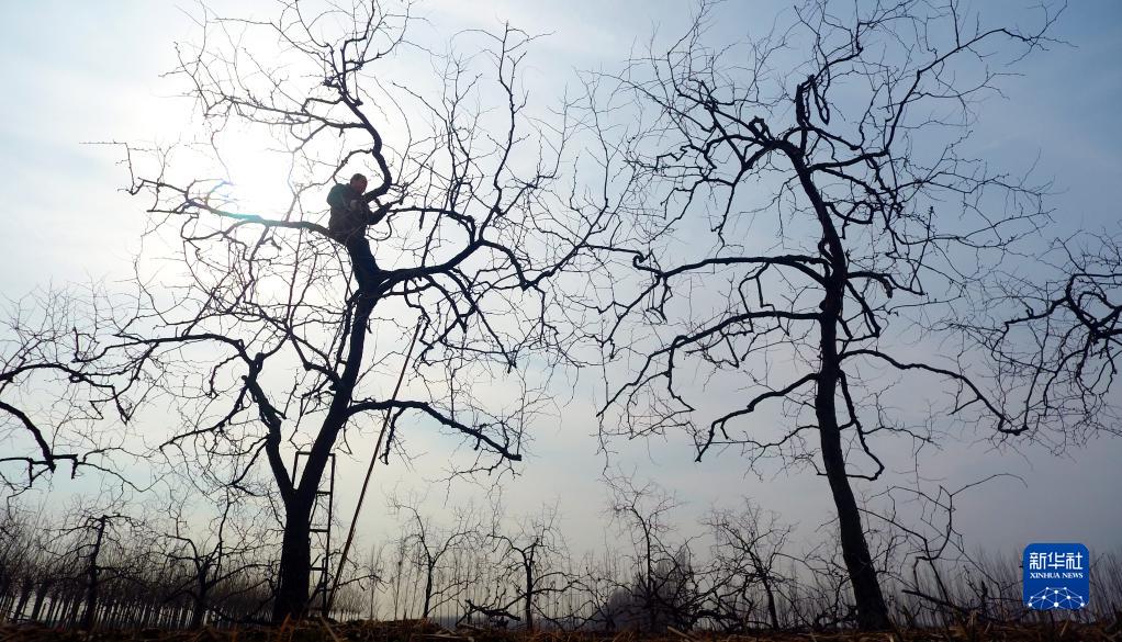 2月11日,山東省聊城市茌平區肖家莊鎮許莊村的農民在田間給棗樹(shù)進(jìn)行剪枝管理。