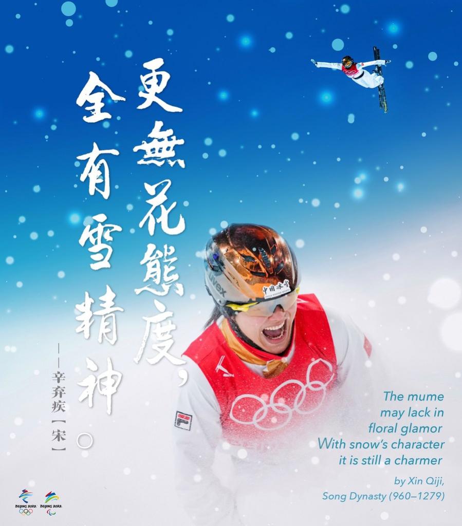 31歲的徐夢(mèng)桃是征戰了四屆冬奧會(huì )的老將。自從她2002年改練自由式滑雪以來(lái),20年無(wú)數次跳躍、翻滾、落地,膝蓋早已傷痕累累,但卻從未輕言放棄。在北京冬奧會(huì )自由式滑雪女子空中技巧決賽上,徐夢(mèng)桃以108.61分的高分一舉奪冠,收獲了個(gè)人職業(yè)生涯中首枚冬奧會(huì )金牌。辛棄疾一定會(huì )為她不屈不撓、堅持夢(mèng)想的精神點(diǎn)贊:“更無(wú)花態(tài)度,全有雪精神?!?/font>