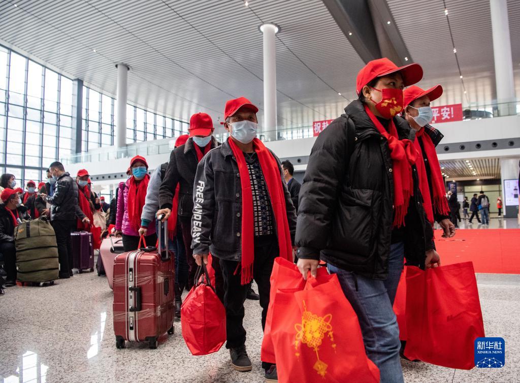2月16日,返崗務(wù)工人員在重慶西站候車(chē)廳排隊前往檢票口,免費乘坐復工專(zhuān)列前往廣東省返崗務(wù)工。新華社記者 唐奕 攝