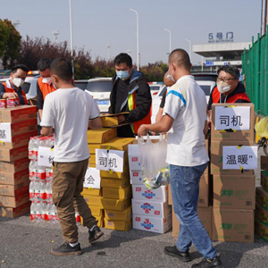上海交通部門(mén)、上海市交通運輸行業(yè)協(xié)會(huì )集裝箱分會(huì )聯(lián)合上海市慈善基金會(huì )為集卡司機提供食物。 新華社記者王辰陽(yáng) 攝