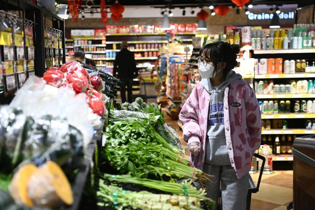 4月18日,在西寧市城西區寧食新心樂(lè )連鎖超市海湖店,市民選購蔬菜。新華社記者 范培珅 攝