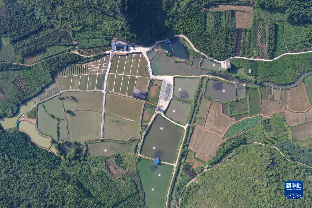 這是柳州市柳江區里高鎮板六村螺螄養殖基地(無(wú)人機照片,2021年6月6日攝)。新華社記者 黃孝邦 攝