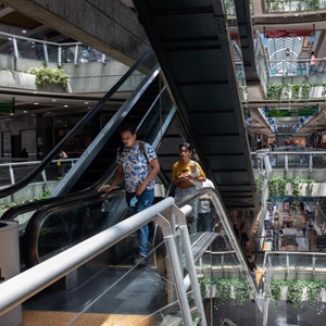 5月3日,委內瑞拉首都加拉加斯市中心,人們在商場(chǎng)購物。新華社記者徐燁攝