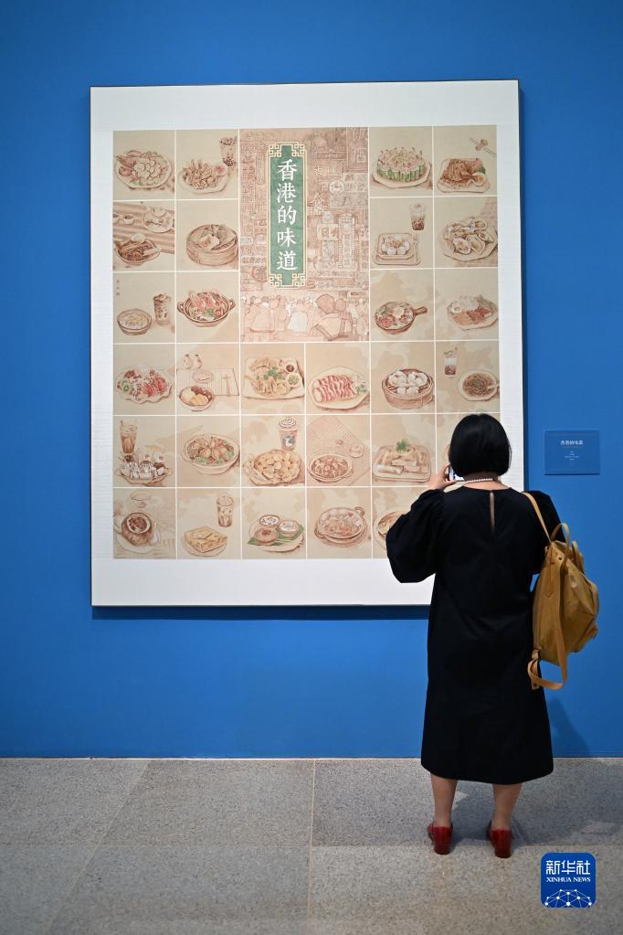 6月24日,參觀(guān)者拍攝參展作品《香港的味道》。 新華社記者 李鑫 攝