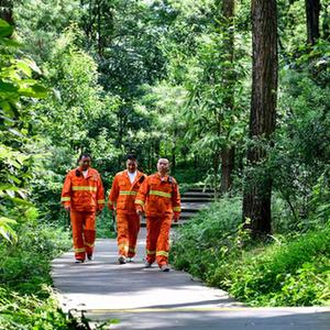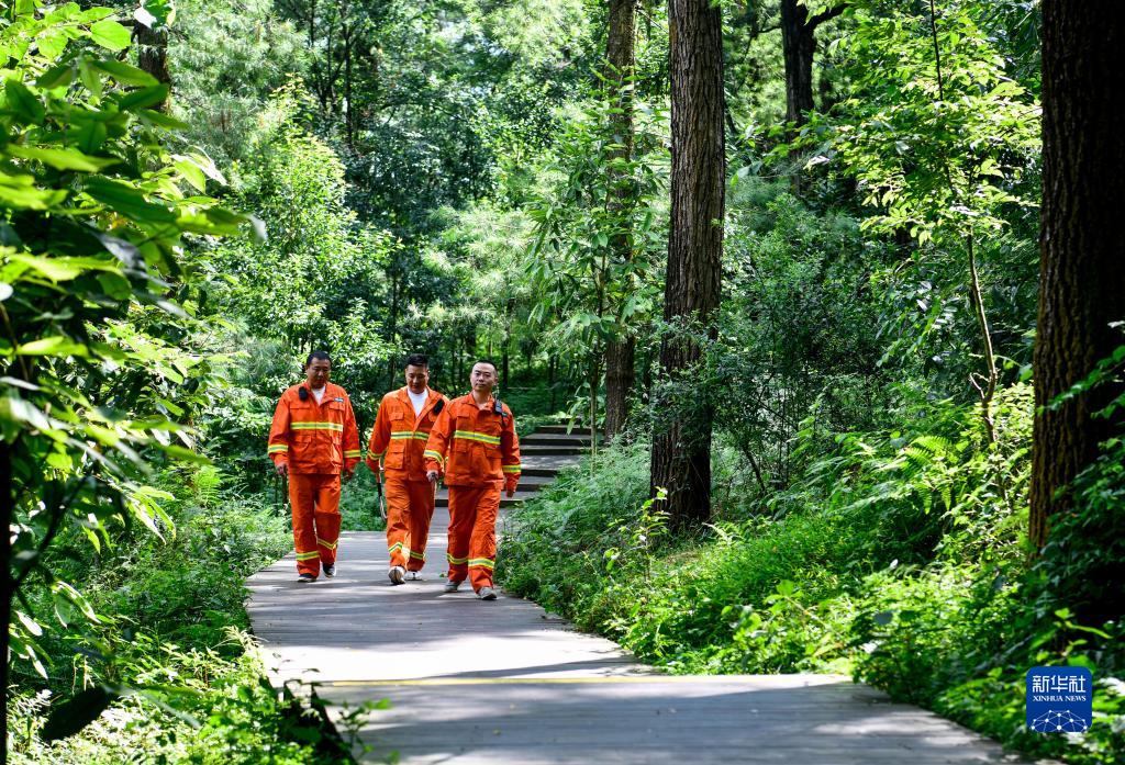 7月13日,在貴陽(yáng)市長(cháng)坡嶺國家級森林公園,村級林長(cháng)郭?。ㄗ笠唬ьI(lǐng)護林員在公園里巡護。