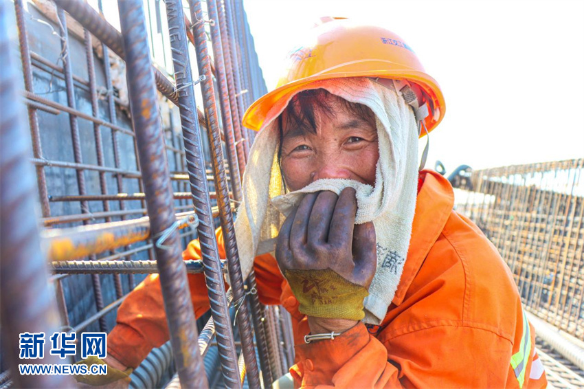 在義東高速1標白云互通施工現場(chǎng),30多名班組工人開(kāi)展支架搭設、鋼筋綁扎、焊接等工作?!白罱鼘?shí)在太熱了,我們就把(每天的)工作時(shí)間提前了?!变摻罟ず喂鹈酪贿吔変摻?,一邊說(shuō),綁扎鋼筋是在給后續混凝土澆筑工作做鋪墊,必須要快,但這樣的大熱天,確實(shí)戴著(zhù)手套都燙手,不過(guò)為了工作,大家都習慣了。因為暴露在太陽(yáng)下工作,何桂美臉頰已被炙烤得通紅。
