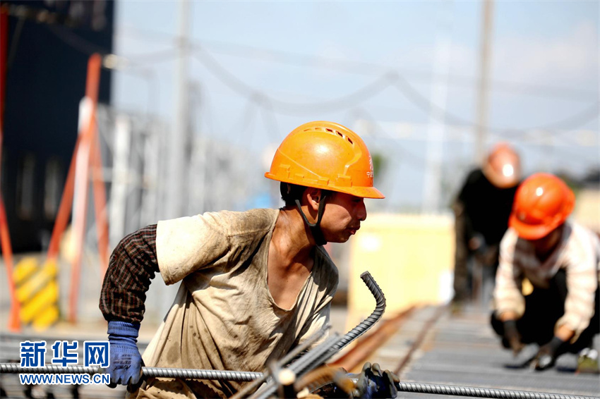 在臺州南鐵路智慧陸港新區項目建設現場(chǎng),工人們在高溫下繼續戶(hù)外作業(yè),爭分奪秒搶工期、加班加點(diǎn)趕進(jìn)度。