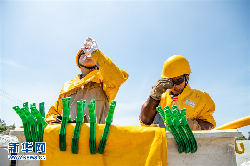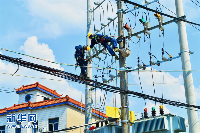 在杭州市臨平區塘棲鎮姚家灣,電力工人頂著(zhù)烈日熱浪在電線(xiàn)桿上作業(yè)。他們是國網(wǎng)杭州市臨平區供電公司的員工。為應對此階段的用電高峰,該公司多措并舉,積極推動(dòng)需求側負荷控制管理,開(kāi)展迎峰度夏多場(chǎng)景演練,實(shí)行“能帶電就不停電”的施工作業(yè)方式,利用無(wú)人機、紅外測溫儀等設備排查線(xiàn)路隱患。