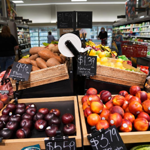 這是7月13日在美國俄勒岡州尤金一家超市拍攝的水果貨架。(新華社記者王迎 攝)