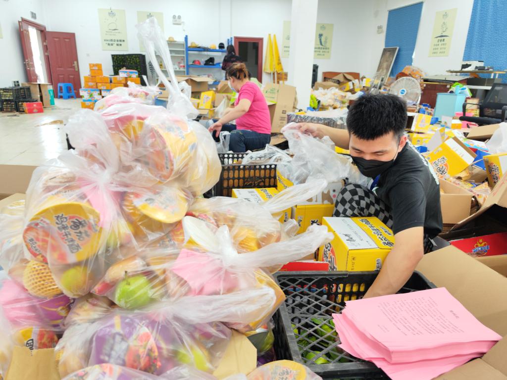 三亞農業(yè)投資集團有限公司倉儲分揀中心內,工作人員正在分揀和打包“愛(ài)心包”,以便盡早送到滯留三亞的游客手中。新華社記者 郭程 攝
