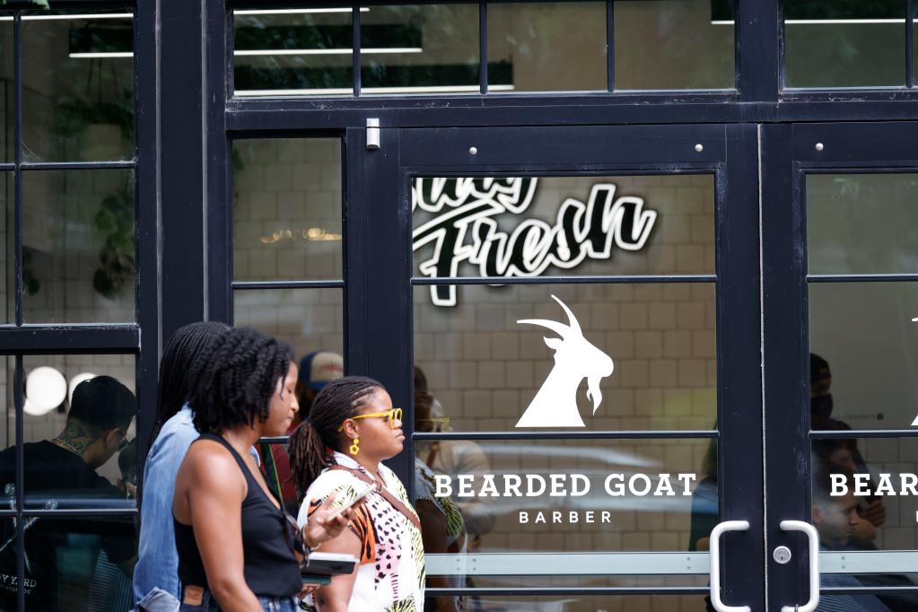 8月5日,在美國首都華盛頓,行人從一家理發(fā)店前走過(guò)。(新華社發(fā),沈霆攝)