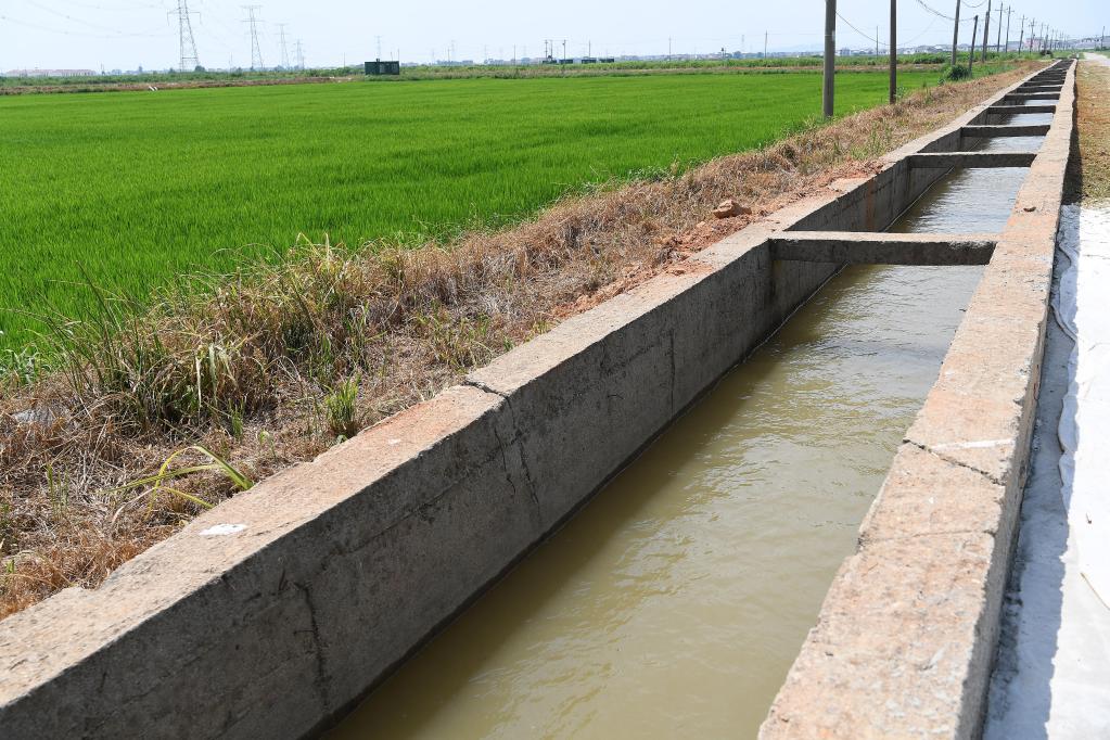 永修縣三角鄉樹(shù)下村,河水經(jīng)提灌后進(jìn)入農田邊上的灌溉渠 。新華社記者 萬(wàn)象 攝