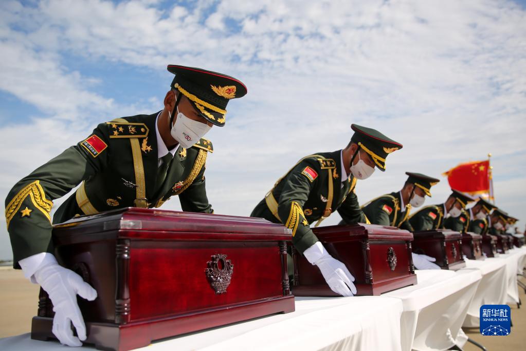 中國退役軍人事務(wù)部副部長(cháng)常正國率中方交接代表團、韓國外交部第二次官李度勛與國防部等相關(guān)部門(mén)負責人出席儀式。中韓雙方代表現場(chǎng)簽署了交接書(shū)。中國駐韓國大使邢海明為志愿軍烈士棺槨覆蓋國旗,中方舉行悼念儀式,中國人民解放軍禮兵護送烈士棺槨登上解放軍空軍專(zhuān)機,烈士英靈將回到祖國和人民懷抱。