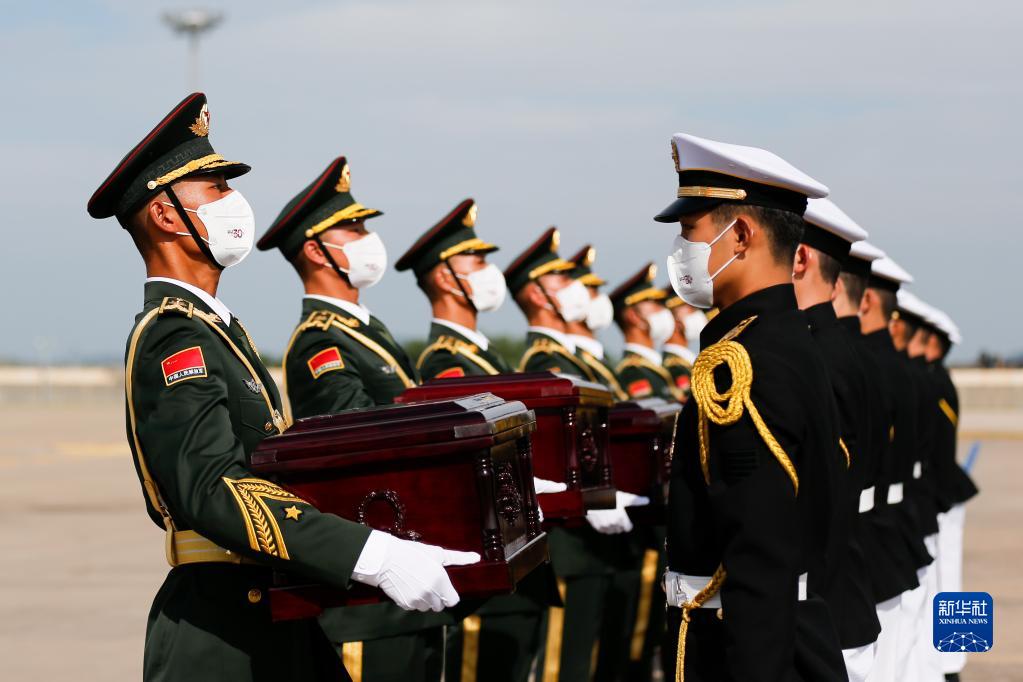 首爾時(shí)間16日上午9時(shí)30分許,韓國仁川國際機場(chǎng)氣氛莊嚴肅穆。第九批在韓中國人民志愿軍烈士遺骸交接儀式在這里舉行,88位志愿軍英烈即將踏上返回故土的歸程。