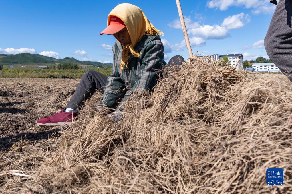 9月19日,在黑龍江勃利縣一中草藥種植基地,當地農民對剛收獲的白薇進(jìn)行初步清理。
