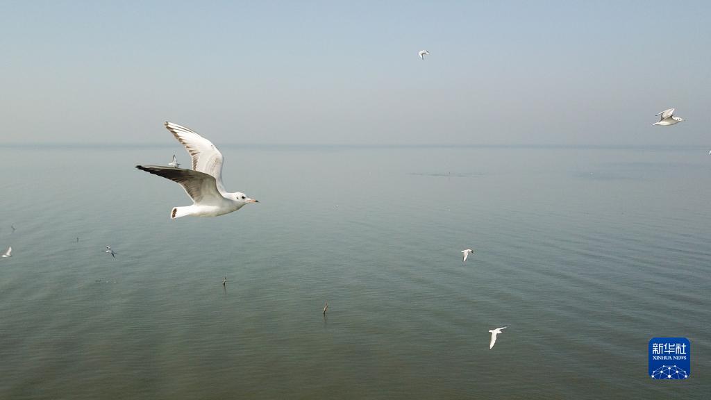 這是2019年11月22日拍攝的巢湖,鳥(niǎo)類(lèi)翔集,風(fēng)景如畫(huà)。