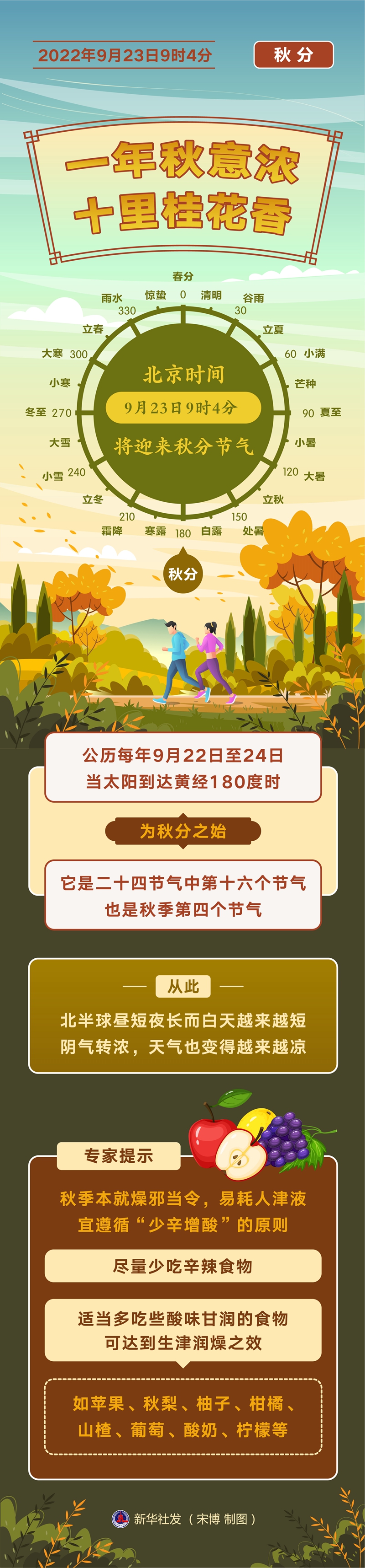新華社天津9月21日電(記者周潤?。把鄬⒚魅杖?,秋向此時(shí)分?!北本r(shí)間9月23日9時(shí)4分將迎來(lái)秋分節氣,意味著(zhù)收獲滿(mǎn)滿(mǎn)、瓜果飄香的金秋季節已經(jīng)來(lái)臨。此時(shí)節,一年秋意濃,十里桂花香,恰如古人云“桂樹(shù)婆娑影,天香滿(mǎn)世聞?!?/p>
