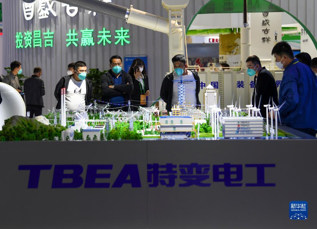 9月20日,在第七屆中國-亞歐博覽會(huì )特變電工展位,參觀(guān)者在了解輸變電設備。