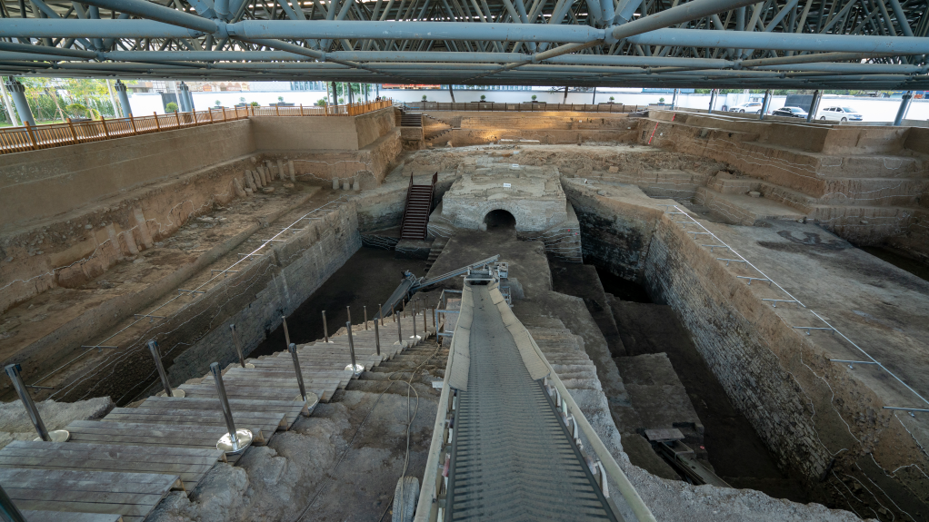 圖為州橋遺址發(fā)掘現場(chǎng)