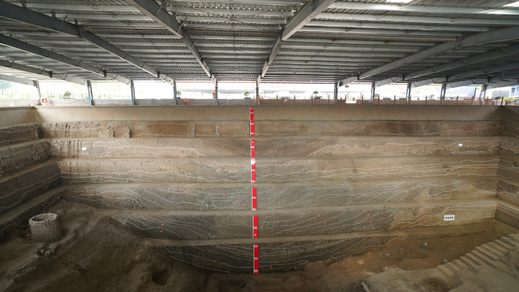 圖為州橋遺址東側探方大運河(汴河)河道西壁剖面圖