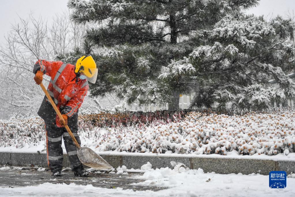 11月12日,環(huán)衛工人在長(cháng)春市自由大路清理積雪。