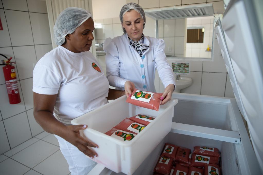 2022年10月4日,在巴西托坎廷斯州馬利亞迪尼亞,食品工程學(xué)家格拉謝拉·帕盧多(右)和工人一起工作。新華社記者 王天聰 攝