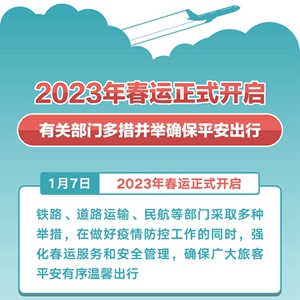 新華社北京1月7日電(記者葉昊鳴、樊曦)7日,2023年春運正式開(kāi)啟。鐵路、道路運輸、民航等部門(mén)采取多種舉措,在做好疫情防控工作的同時(shí),強化春運服務(wù)和安全管理,確保廣大旅客平安有序溫馨出行。