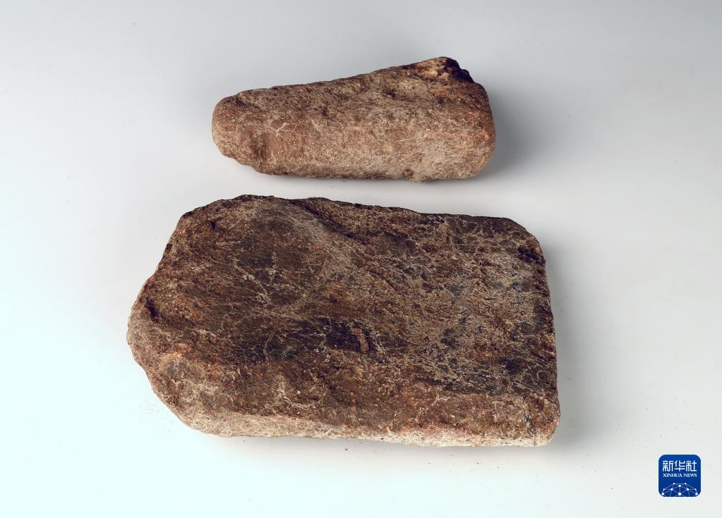 河北尚義縣四臺新石器時(shí)代遺址出土的磨杵與盤(pán)(資料照片)。新華社發(fā)