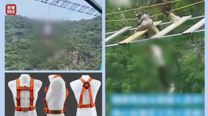 2022年7月22日,天津市薊州區的九山頂景區,一名游客在“步步驚心”“網(wǎng)紅”吊橋項目游玩時(shí),突然昏迷,懸在半空。救援時(shí),安全帶突然脫落,游客摔下山谷,不幸身亡。