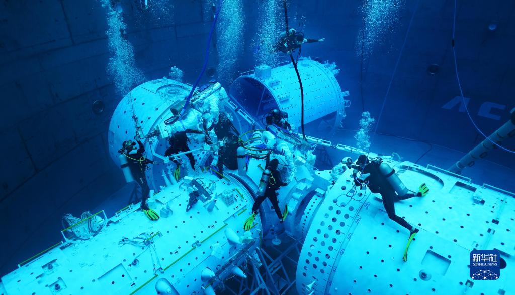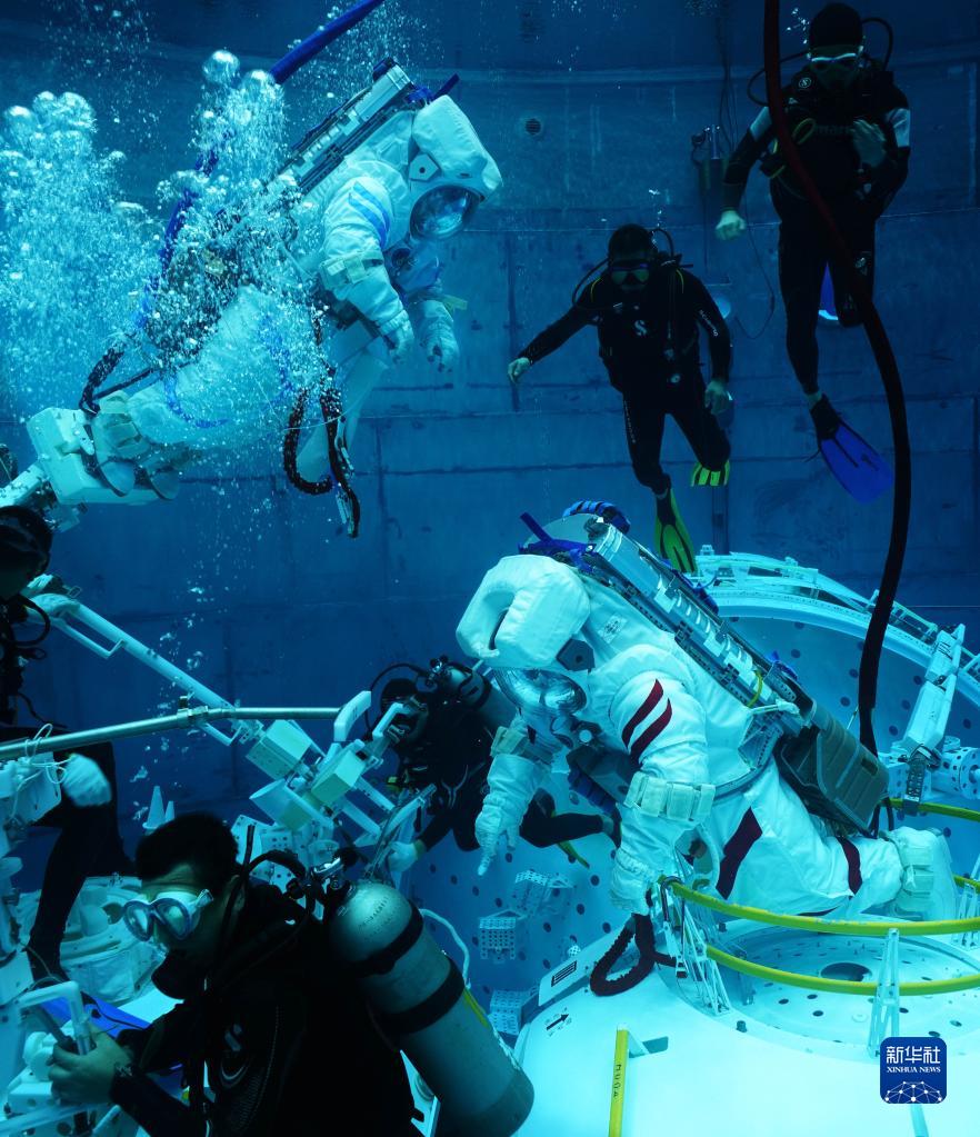 神舟十六號航天員在進(jìn)行水下訓練(2022年9月14日攝)。新華社發(fā)(徐部 攝)