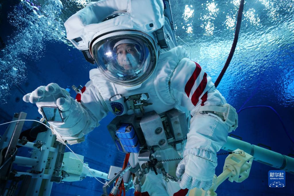 神舟十六號航天員景海鵬進(jìn)行水下訓練(2023年3月16日攝)。新華社發(fā)(孔方舟 攝)