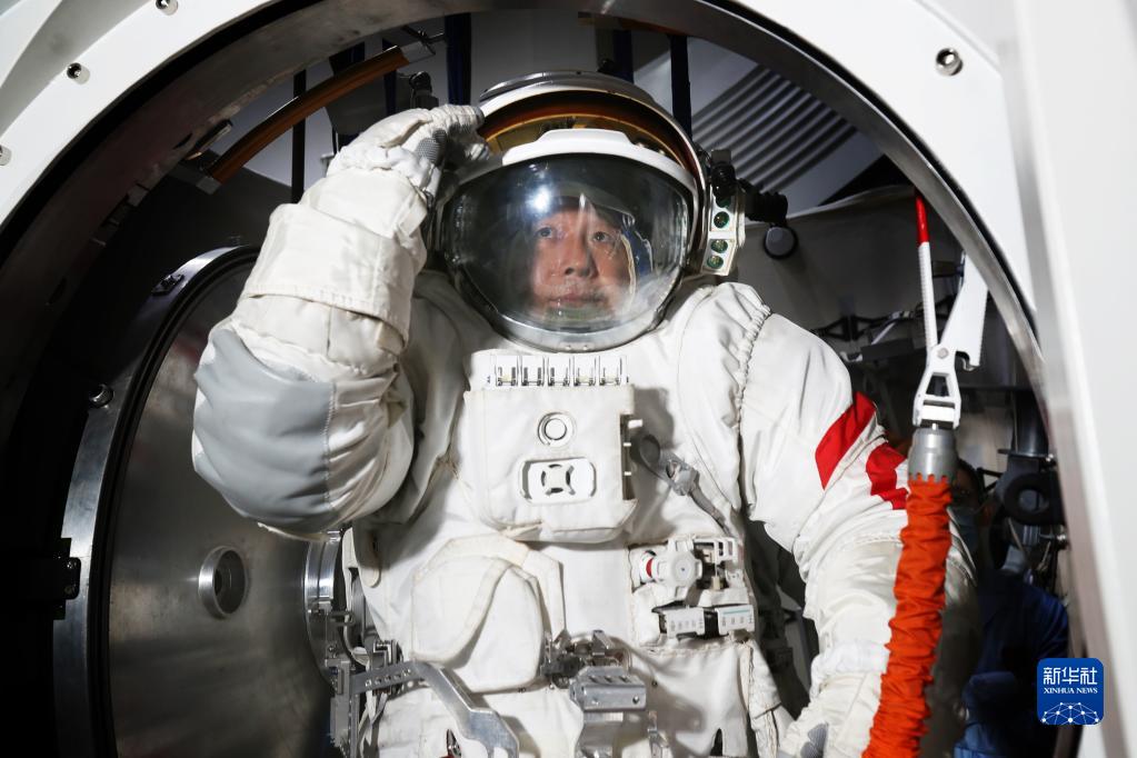 神舟十六號航天員景海鵬進(jìn)行出艙程序訓練(2023年5月5日攝)。新華社發(fā)(徐部 攝)