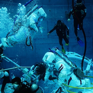 大多數航天員面對水下訓練都需要克服各種各樣的挑戰,有狹小密閉空間帶來(lái)的束縛感,有水下波紋導致的眩暈感,以及體力不支等等。朱楊柱遇到的挑戰則是上腳限位器。將厚重的鞋子近乎盲操作地卡進(jìn)腳限位器2厘米左右的卡槽縫里,原本就是個(gè)高難度的技術(shù)活。他的腳型比較小,穿著(zhù)艙外服配套的鞋子后,腳在鞋里晃蕩,上腳限位器更加困難。經(jīng)過(guò)反復試驗,他穿上兩雙厚襪子、兩雙薄襪子后,鞋子終于合腳了。