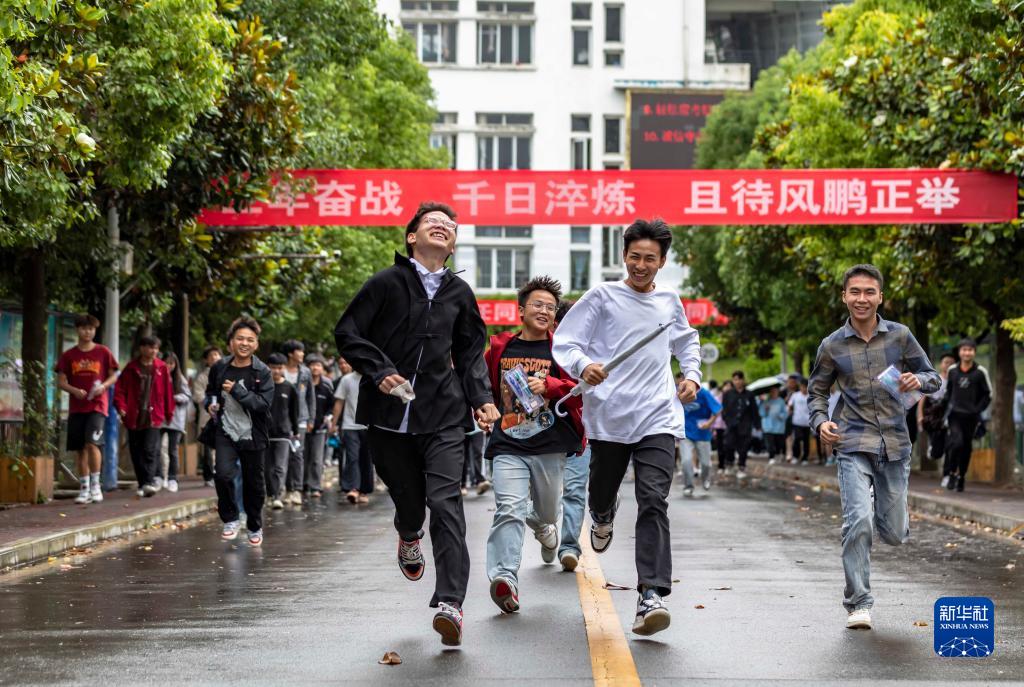 6月8日,在貴州黔西一中考點(diǎn),考生完成最后一科考試后沖出考點(diǎn)。