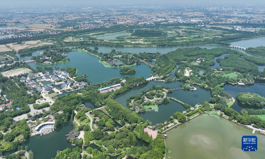 6月9日拍攝的常熟尚湖風(fēng)景區景色(無(wú)人機照片)。