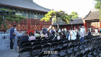 年輕觀(guān)眾在古建下乘涼