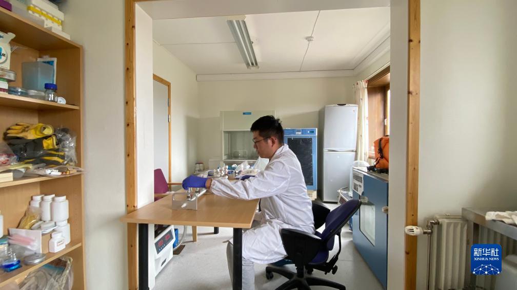 7月25日,一名中國科考隊員在挪威斯瓦爾巴群島新奧勒松的中國北極黃河站工作。新華社發(fā)(中國北極科考隊供圖)