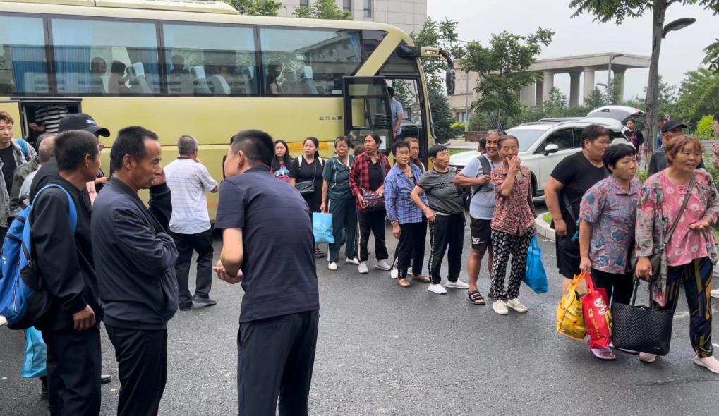 8月4日,轉移安置群眾乘大巴車(chē)來(lái)到五常市雅臣中學(xué)安置點(diǎn)。新華社記者 劉昊東 攝