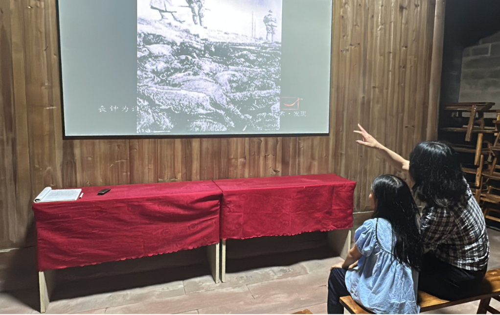 梅庭軍(左一)在遠東國際軍事法庭法官梅汝璈故居為村民和游客進(jìn)行講解。(梅志剛 攝)