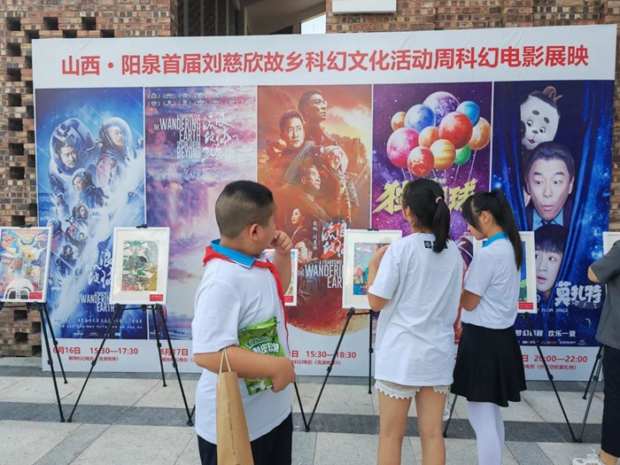 8月15日,以劉慈欣命名的“科幻文化周”在“陽(yáng)泉記憶·1947”文化園舉辦。進(jìn)入園區,紅色的磚墻、改建的老舊廠(chǎng)房、高聳的煙囪映入眼簾,路邊架設著(zhù)一幅幅來(lái)自全國中小學(xué)生創(chuàng )作的科幻美術(shù)作品。