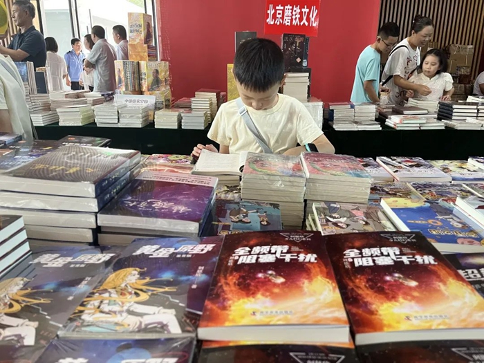 即使有影視《流浪地球》系列和《三體》的加持,對于劉慈欣及其作品,問(wèn)起陽(yáng)泉人,有的還是茫然。也有本地人說(shuō),“學(xué)生們都知道他,讀過(guò)他的書(shū)?!蔽幕瘓@區內,“劉粉”確如夏日一般熱烈。有的在拍照,有的在購書(shū),有的在追著(zhù)要簽名和合影。在一場(chǎng)題為“現實(shí)主義傳統和科幻文學(xué)高地”論壇的提問(wèn)環(huán)節,一個(gè)七八歲的孩子問(wèn)劉慈欣,“如何成為像你一樣優(yōu)秀的人”。