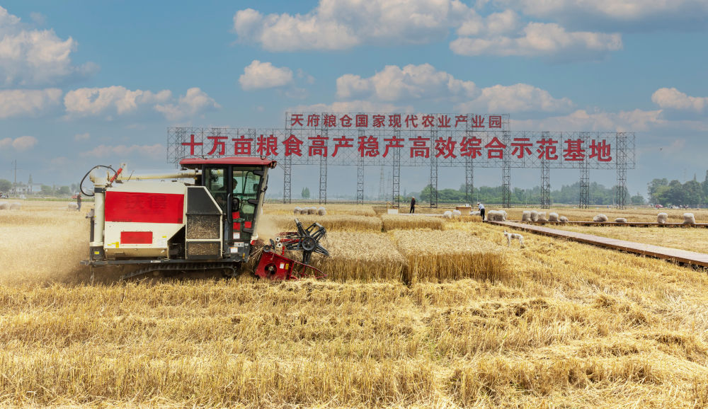 5月18日,天府糧倉產(chǎn)業(yè)園豐收畫(huà)面(崇州市委宣傳部供圖)