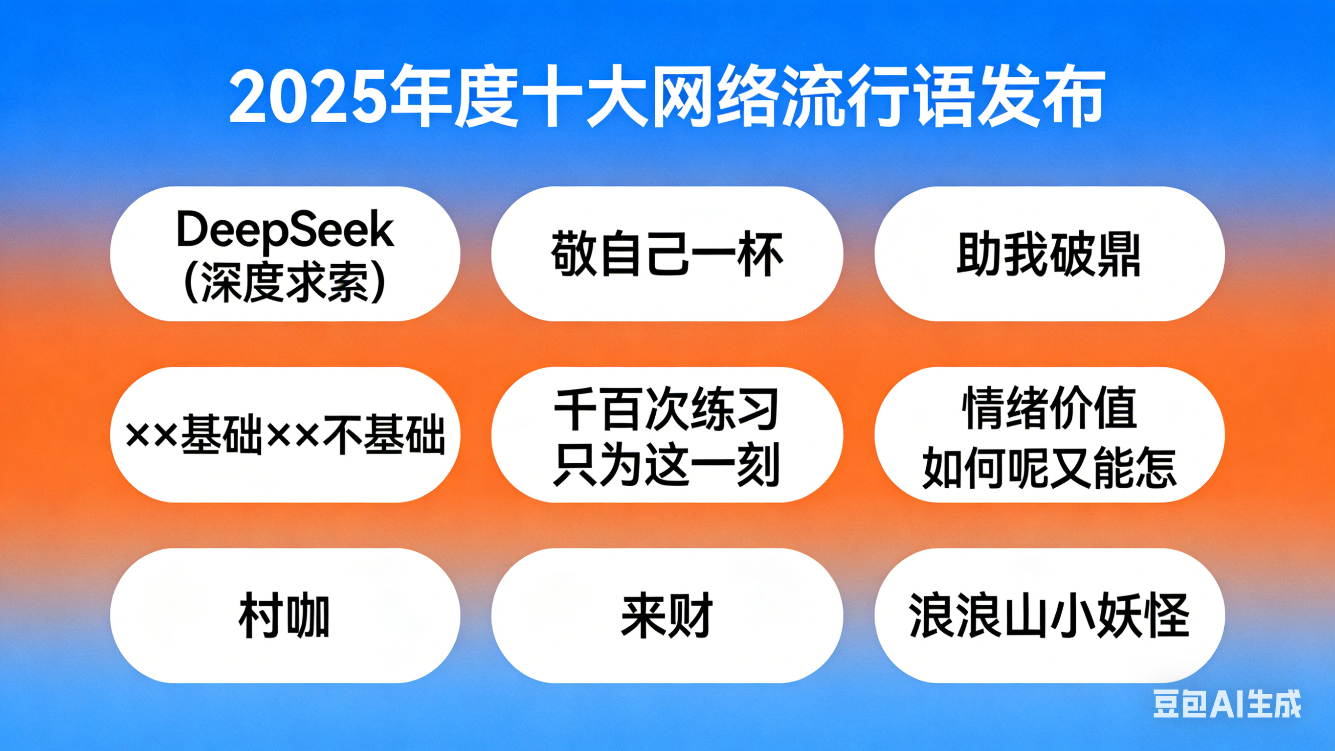 2025年度十大網(wǎng)絡(luò )流行語(yǔ)發(fā)布 “DeepSeek(深度求索)”“敬自己一杯”等入選