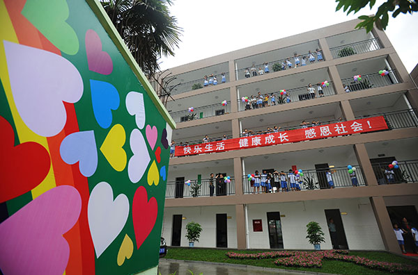 2009年8月26日,當時(shí)全國最大的集中安置四川地震災區孤困兒童基地——雙流“安康家園”、新棠湖小學(xué)等落成。這是新華社記者江宏景在新棠湖小學(xué)宿舍區拍攝的一張現場(chǎng)照片。