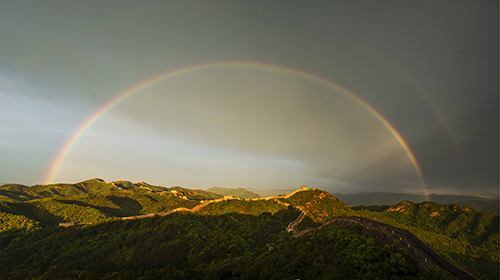 大雨過(guò)后,多地出現彩虹,上圖是新華社6月14日播發(fā)的,雷陣雨過(guò)后,位于河北省承德市灤平縣的金山嶺長(cháng)城出現雙彩虹景觀(guān)。